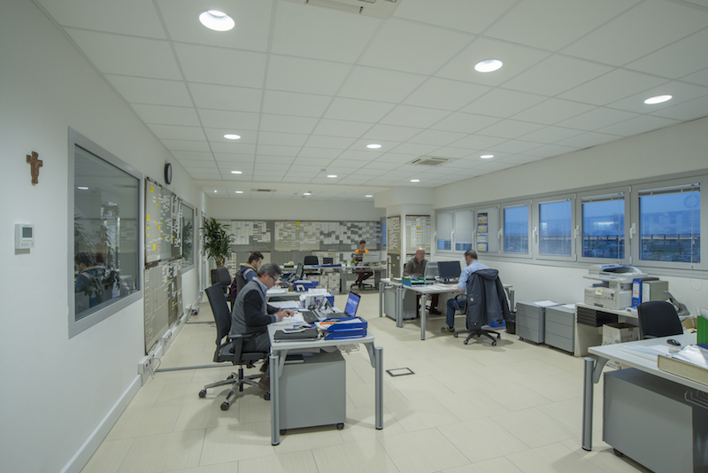 L’obiettivo aziendale di puntare in alto ha trovato una risposta professionale nel progetto di illuminazione curato da Zumtobel, creato su misura per valorizzare l’ambiente produttivo e fornire al personale delle singole aree sia un supporto di miglioramento psico-fisico che rinforzare l’area sicurezza, punto centrale dove la produzione tecnologia è complessa e totale.