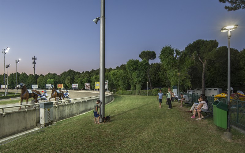 In questo contesto luminoso che permette una nuova percezione dello spazio, tutta l’area dell’ippodromo rinasce e stimola l’immaginario che lega intere famiglie al seducente mondo del cavallo. Ed in particolare è bene ricordare che il cavallo rappresenta uno dei più grandi desideri di un bambino.