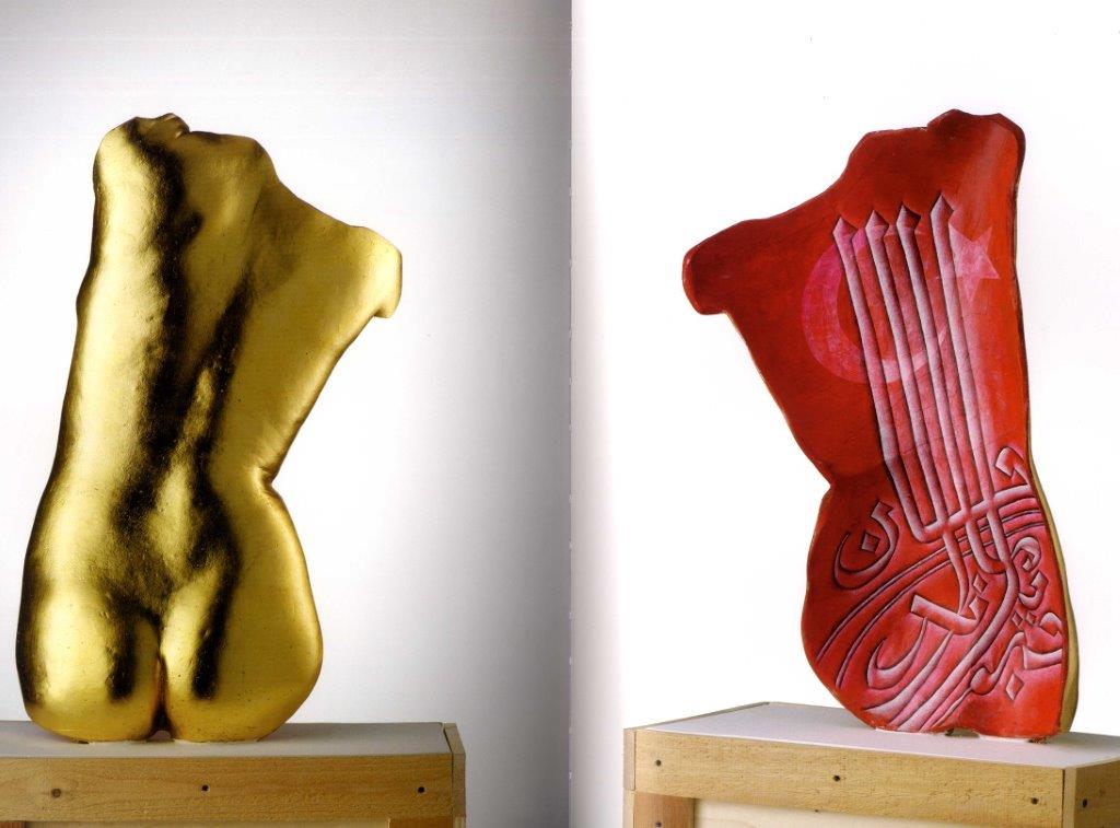 Un progetto sull’identità mediterranea formata da diverse stratificazioni, contaminazioni che ci portano alla madre terra e al suo apice di bellezza, Venere, ad esempio. Nascono così i corpi – scultura senza testa e senza braccia, impronte di corpi di pelli indurite dal tempo e dai ricordi, che ci permettono di ammirare un dorso dorato facilmente e gradevolmente leggibile e simultaneamente codificarlo scoprendo all’interno di questo dorso un messaggio scritto, graffiato, inciso in un linguaggio mediterraneo sempre diverso.