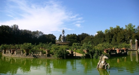 I giardini dietro Palazzo Pitti, residenza dapprima dei Medici, poi dei Lorena e dei Savoia, furono costruiti tra il XV e il XIX secolo e occupano un’area di circa 45.000 m². Alla prima impostazione di stile rinascimentale, visibile nel nucleo più vicino al palazzo, si aggiunsero negli anni nuove porzioni con differenti impostazioni: lungo l’asse parallelo al palazzo nacquero l’asse prospettico del viottolone, dal quale si dipanano vialetti ricoperti di ghiaia che portano a laghetti, fontane, ninfei, tempietti e grotte. Notevole è l’importanza che nel giardino assumono le statue e gli edifici, come la settecentesca Kaffeehaus (raro esempio di gusto rococò in Toscana), che permette di godere del panorama sulla città, o la Limonaia, ancora nell’originario color verde Lorena.
